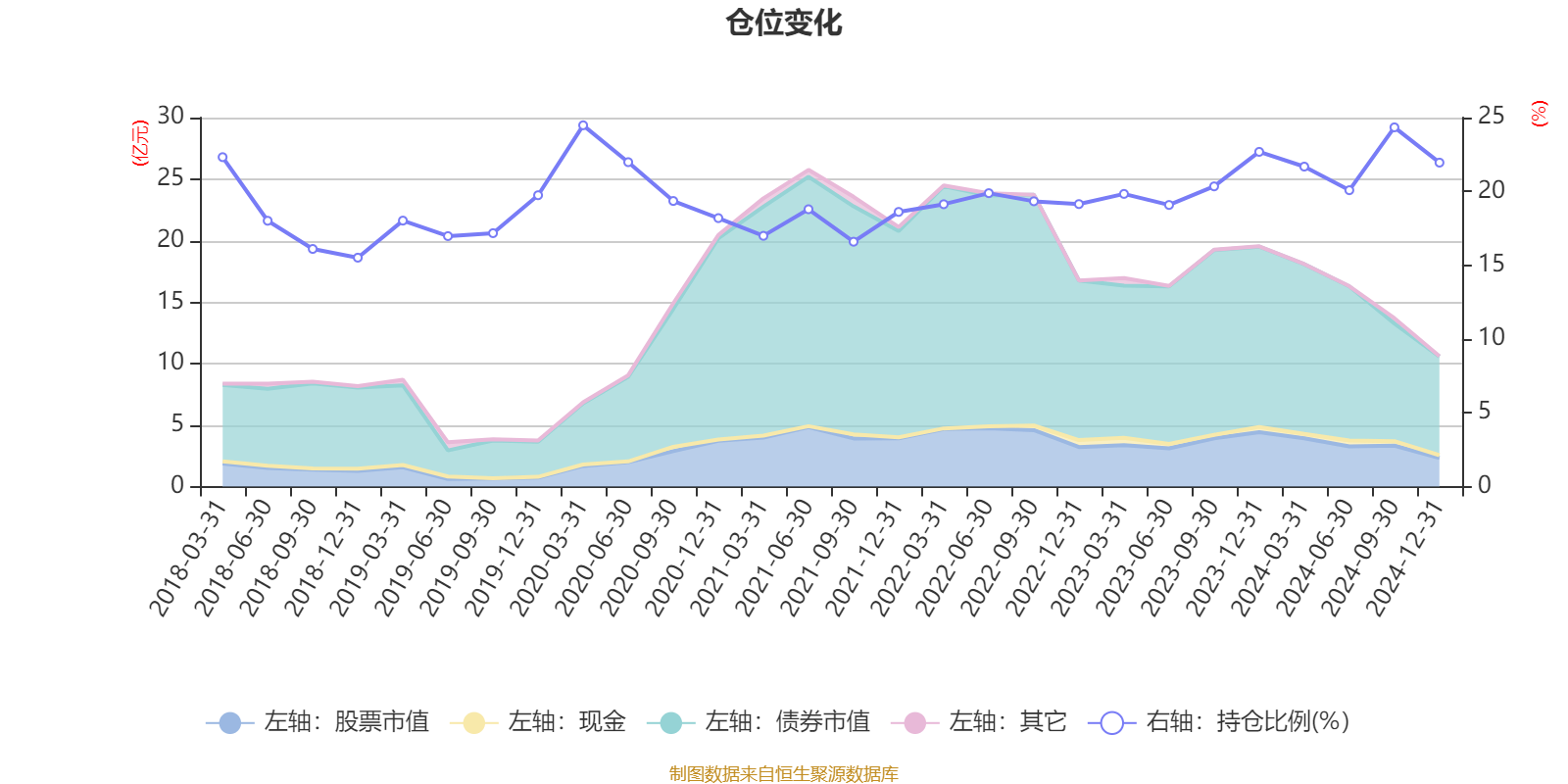据定期报告数据统计,近三年平均股票仓位为20.62%,同类平均为18.74%。2020年一季度末基金达到24.48%的最高仓位,2018年末最低,为15.51%。