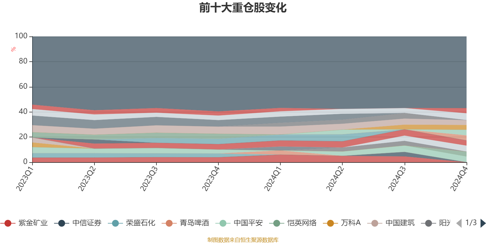 截至2024年末,基金十大重仓股分别是伊利股份、海澜之家、中国平安、桐昆股份、宁德时代、中国移动、鱼跃医疗、金山办公、恺英网络、石头科技。