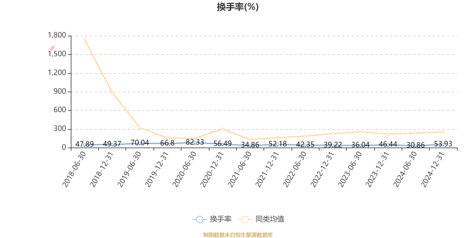 截至2024年12月31日,基金最近一年换手率约81.03%,持续低于同类均值。