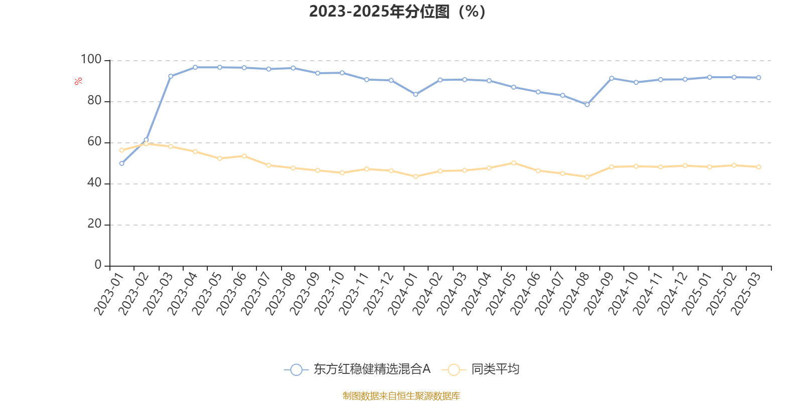通过所选区间该基金净值增长率分位图,可以观察该基金与同类基金业绩比较情况。图为坐标原点到区间内某时点的净值增长率在同类基金中的分位数。