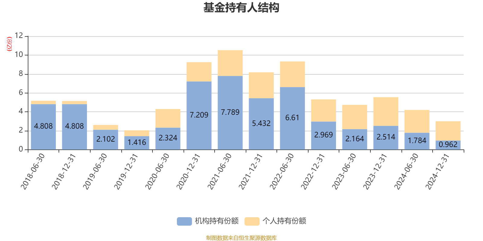 截至2024年12月31日,基金持有人共计4.89万户,合计持有3亿份。其中管理人员工持有135.66万份,占比0.45%,机构持有份额占比32.12%,个人投资者占比67.88%。
